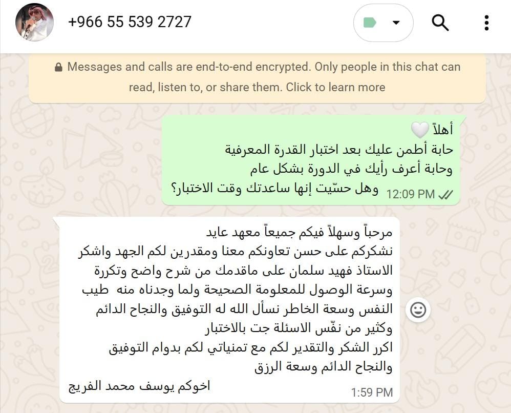 اجتز اختبار القدرة المعرفية مع الدورة المكثفة (3 أسابيع). تأسيس وتدريب وحقيبة شاملة مع أ. فهيد سلمان. فيديوهات مسجلة واختبارات محاكية. سجل الآن!