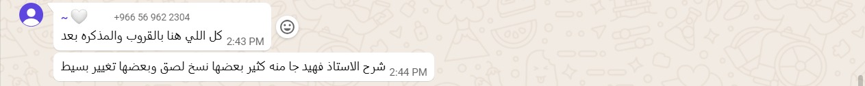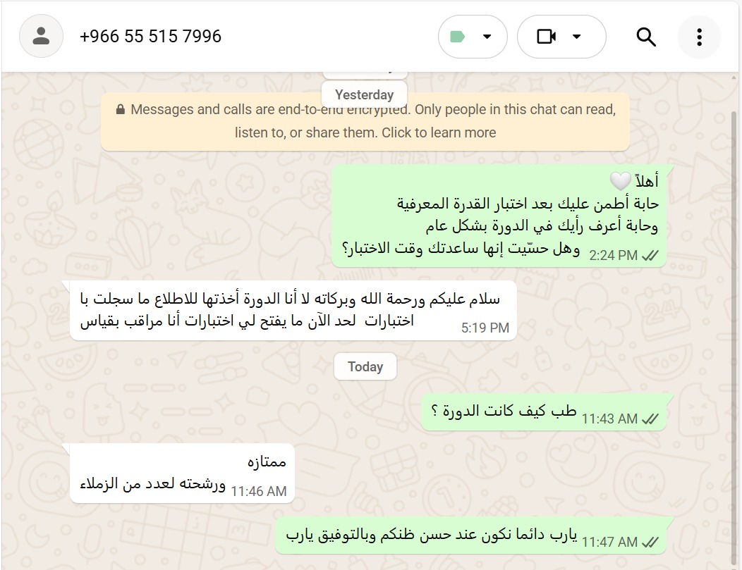 • قروب مناقشات مع المدربين للإجابة على كافة استفساراتك